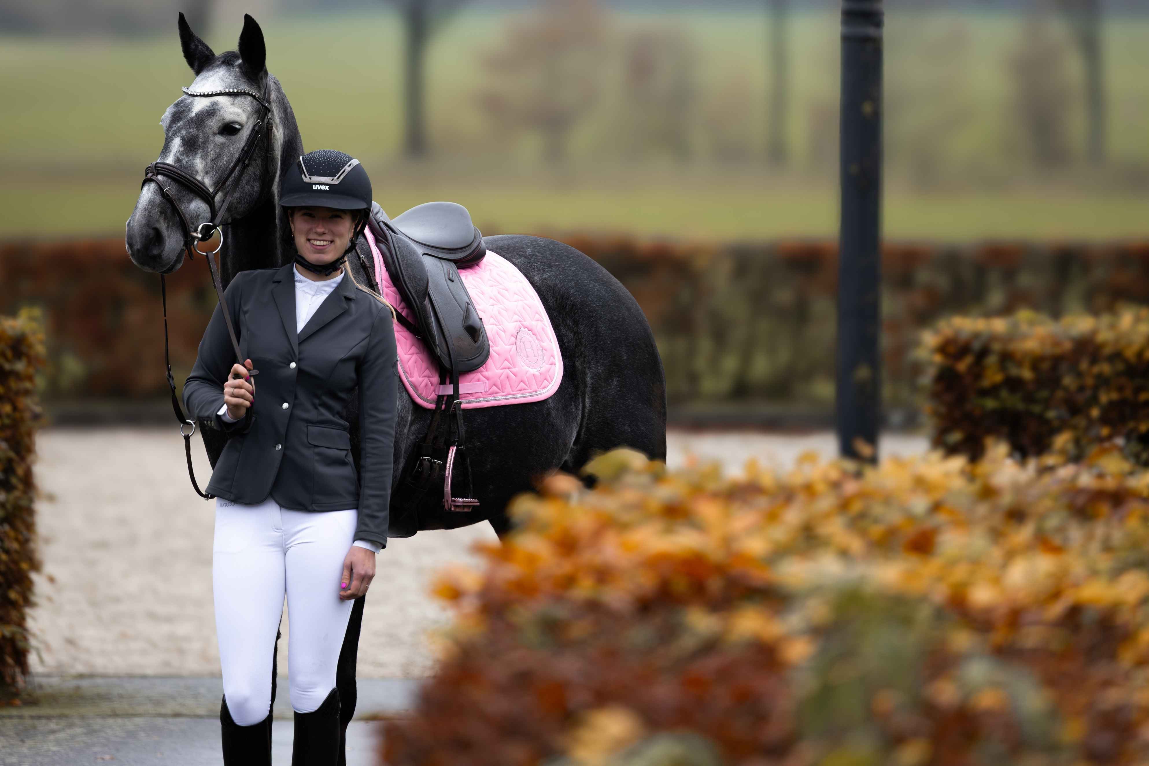 Janneke is a dressage rider and content creator, known as @jannekepunte_dressage. As an ambassador for Harcour, she represents the brand every day from her riding school in Enschede, the Netherlands. Between training sessions, competitions, promotion, and breeding, she shares authentic, inspiring, and energetic horse riding.