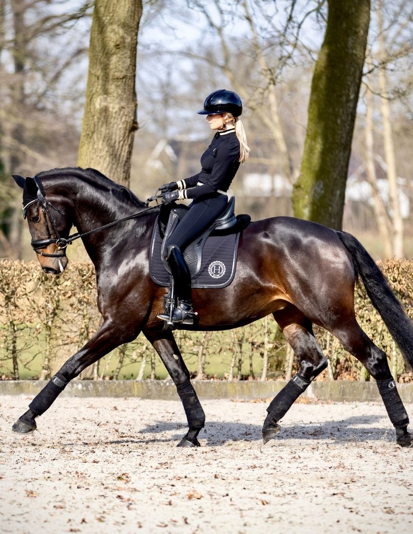 Sanne designed this saddle pad with the aim of bringing calm and confidence to my training sessions with Ernie 🌿