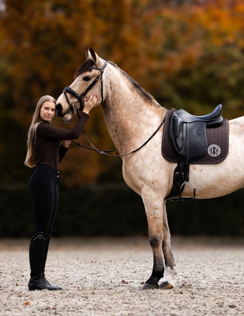 Lotte has been part of the Harcour team for two years, together with her faithful Cami. She is known as @lottexcami and shares dynamic, positive, and energetic content. Her world reflects a modern, accessible approach to riding that focuses on fun, progress, and a close bond with her horse.
