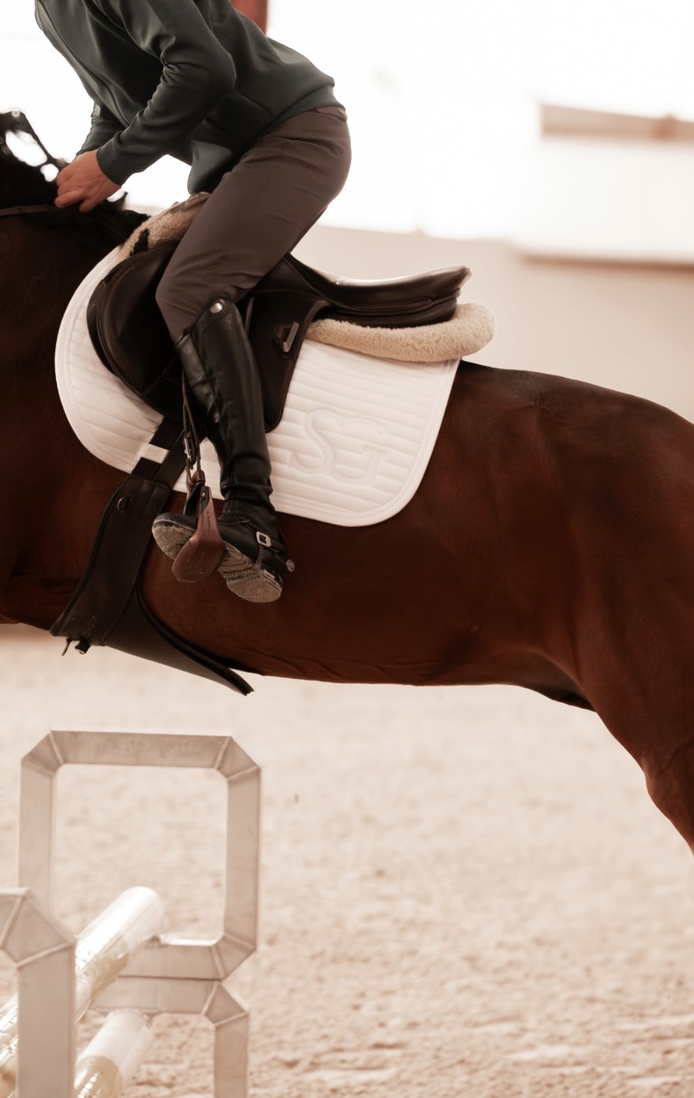 SG, une ligne imaginée par Steve Guerdat en collaboration avec Harcour. Elle allie technicité, élégance et exigence sportive .